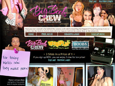 Big Boobs Crew invites you to join the team vicariously and see what making amateur porn flicks is all about, specifically amateur porn flicks of big boob hotties. The site features all 'behind-the-scenes' type content that show you what goes down on a shoot. It also means spending lots of candid time with big boob hotties, watching their tits hang out as they get ready for a shoot, or try out different poses for camera guy. I would love to be on hand to oil down these big tits for out door shoots. Hell, I'd love to just sweep the damn floor! The site offers a unique experience and its a fun time getting to spend time with the busty topless girls as themselves.