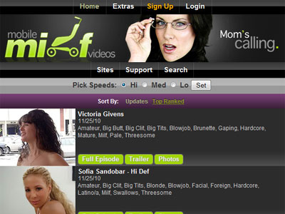 Mobile MILF Videos is a large mobile-ready site full of hardcore mature sex. The site isn't updated much but it comes with other great extras and works really well on smart phones. The site is a nice option for those that need porn on the go.