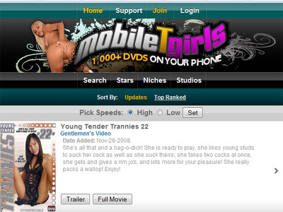 Technology is growing by leaps and bounds. Ten years ago the cell phone was just starting to spread like wild fire, and back then there were no touch screens or web browsing options. Now they are basically small computers, especially phones like the iPhone. If you thought the porn industry missed the memo well think again. For those seeking shemale hardcore on the go there's MobileTgirls, a site designed specifically to cater to iPhone and other mobile porn surfers' needs (and limitations).