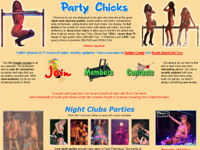 The recipe is familiar to anyone that's been around cities like Cancun or Key West during spring break: booze + beautiful girls in their twenties = flashing titties and lustful naughty behavior. The lads behind Party Chicks have followed the scent of sex wherever its led them and their site catalogues hundreds of public nudity, sex parties, and erotic festivals that they've attended.
