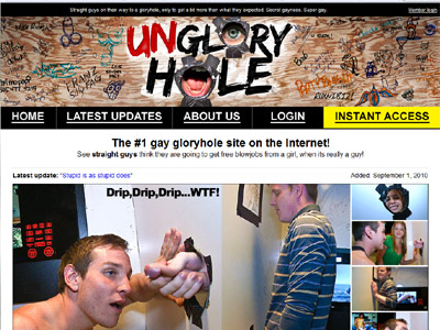 Unglory Hole has great content and does a great job playing with the bait and switch scenario. These straight guys have no idea that another gay guy is sucking them off and its a hot scenario. The site is small because it's new so the lack of extras is a bit of a bummer but in time that shouldn't be an issue, and in any case the action is good enough to warrant signing up right now anyway.