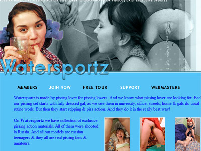 Water Sportz is quite obviously a site for those into pissing fetish porn, not so much those into white water rafting or jet skiing, though I don't see why they should be exclusive of each other. Here the focus is on hot European models in their twenties being kinky and filthy as the case is. The girls piss in public stairwells, on the street, or in the shower as they strip and masturbate. The petite beauties will piss into containers and glasses and gargle on the rich golden fluid. Nothing seems to be too extreme for these broads, and it's all for the better.