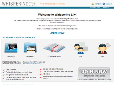 Whispering Lily is a unique online community for fans of masturbation. Most of the members and the user-submitted content is of men. The site isn't very large or very active but it has some fun material and features. With access to an entire network of masturbation sites included for free, it works out to be a pretty good deal in the end.
